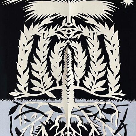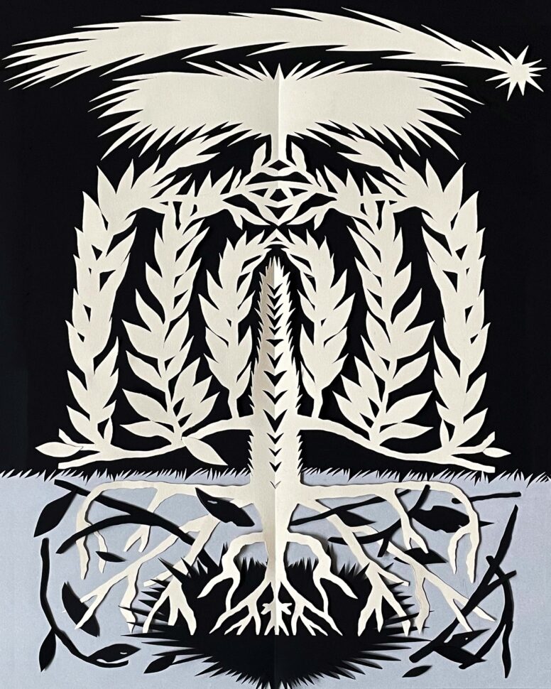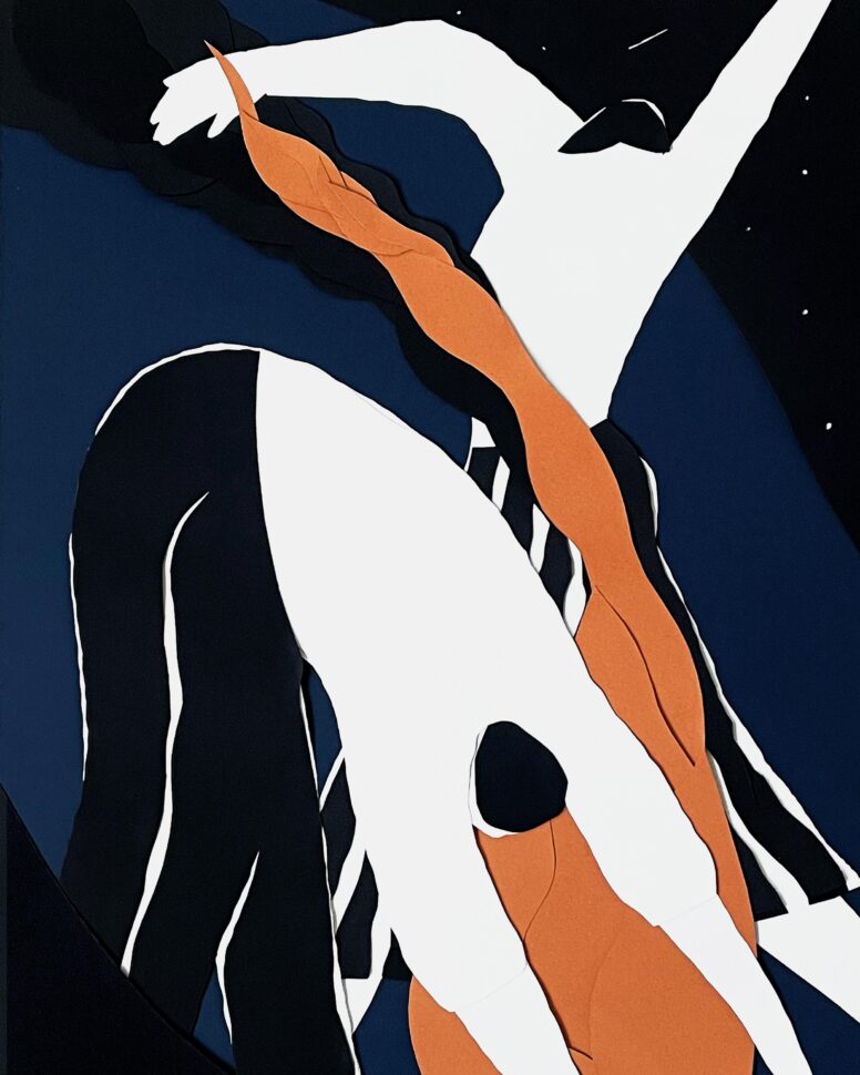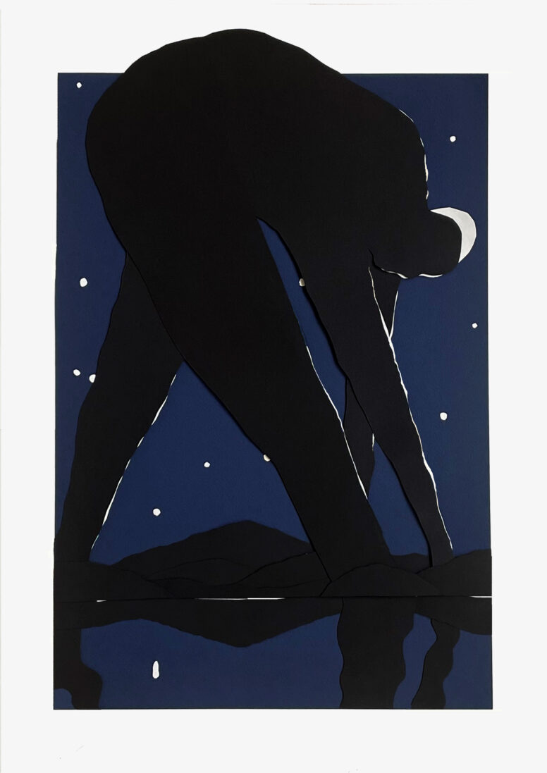 Ja, heel recent – pas sinds december vorig jaar. Ik ben er in de winter mee begonnen en het lijkt eigenlijk veel op wat ik eerder heb gedaan, met de directheid van het zwart. Maar ik werd soms ongeduldig met Chinese inkt – die moet drogen en kan rommelig worden. Papier is nog directer: het hoeft niet te drogen, het geeft geen vlekken. Het geeft me ook de ruimte om fouten te maken. Ik doe het grote werk met een grote schaar. Het gaat echt om directheid.