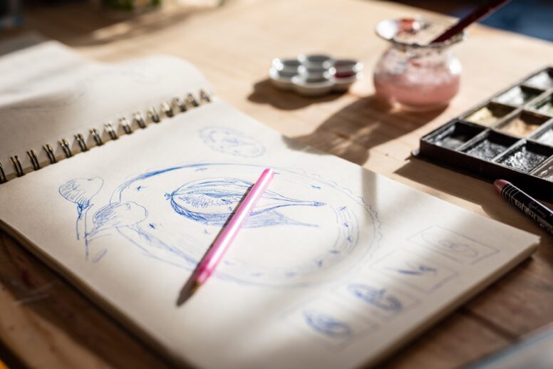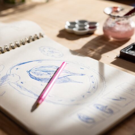 Vanuit mijn ervaringen, uit de kindertijd, uit dagelijkse vragen… heel vaak door dingen die ik met mijn eigen ogen zie en met mijn lichaam meemaak. De natuurobservaties die ik al van kinds af aan geleerd heb – met dank aan mijn ouders – vormen tot op de dag van vandaag een belangrijke voedingsbodem. Zo zit de kleine tuin van mijn huurhuis boordevol inspiratie – knoppen, slakken, wormen, zaden… allerlei sappige toestanden! Voor B’Rock krijg ik prikkels – achtergronden van de muziek/componist, sfeer, klanken – en zoek ik verder, schets ik visuele associaties, zoek ik naar een raakpunt met mijn interesse en leefwereld.